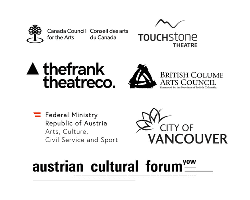 Touchstone Theatre, the frank theatre, Canada Council for the Arts, BC Arts Council, The City of Vancouver, Austrian Federal Ministry for Arts, Culture, Civil Service & Sport, Austrian Cultural Forum Ottawa, Push International Performing Arts Festival, Theatre Replacement, Creative Scotland, Traditional Arts & Culture Scotland, Scottish Storytelling Centre, University of the West of Scotland Theatre Lab